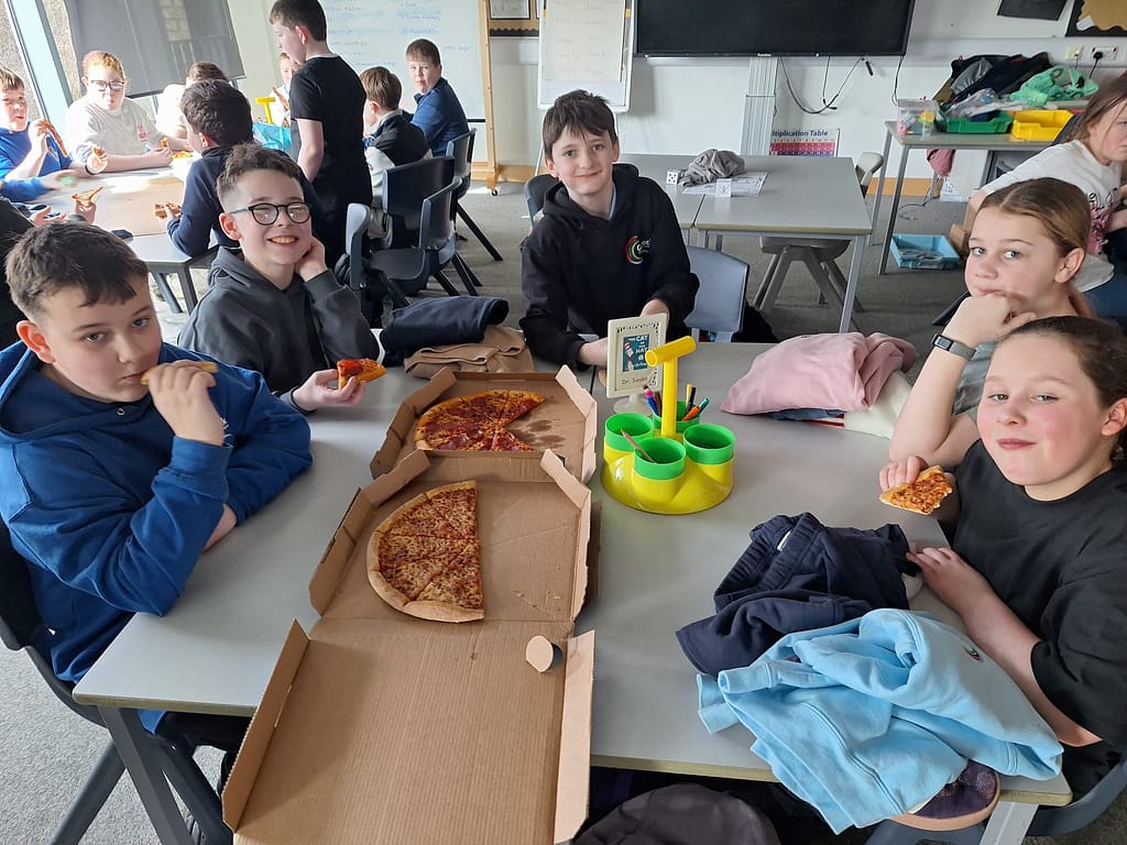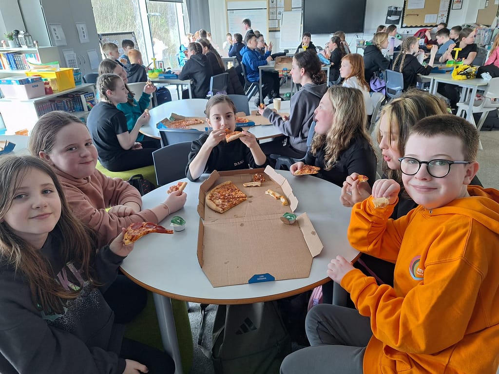 On Tuesday they enjoyed a movie day in the auditorium with hot chocolate and pizza to tuck into.