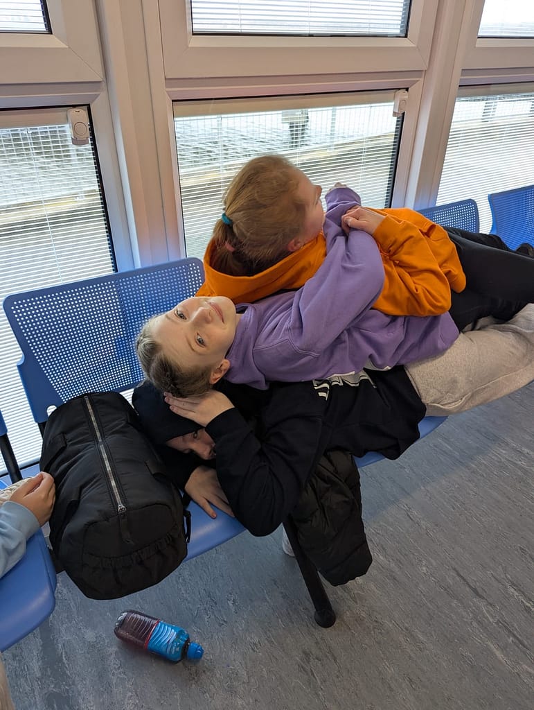 On Monday the excited Primary seven pupils made their way to Ardrossan Ferry Terminal only to find out that a mechanical problem meant there were no sailings to the island.