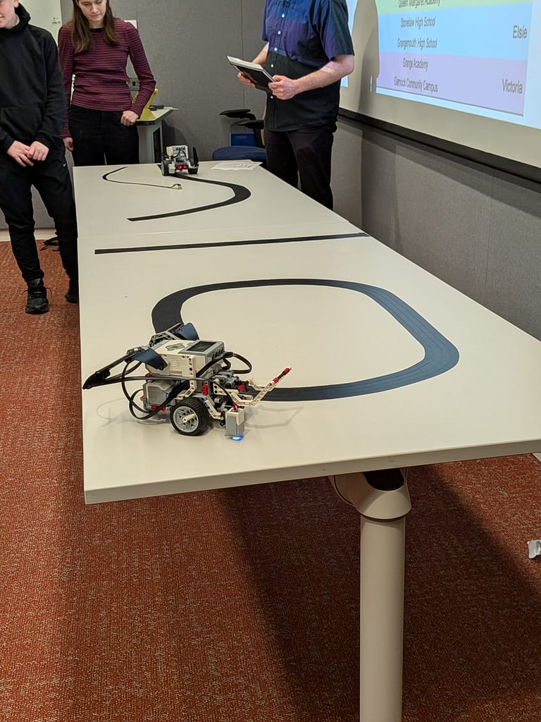 Finlay Johnstone, Ruairidh Addies, Grace Howitt, Kaiden Grozier, Jack Mason and Thomas Ioannou have spent the past eight weeks designing, building and programming a LEGO Mindstorms robot. Their hard work paid off when they represented the school at a challenge day held at Glasgow University.